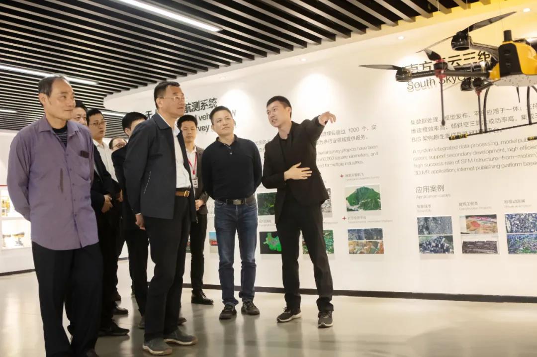 在徐丹龍的帶領(lǐng)下,鄔捷龍董事長(zhǎng)一行首先參觀了南方測(cè)繪體驗(yàn)中心,詳細(xì)了解南方測(cè)繪發(fā)展歷程、產(chǎn)品和業(yè)務(wù)、企業(yè)文化、發(fā)展愿景等,并就無人機(jī)航測(cè)、三維點(diǎn)云數(shù)據(jù)采集、南方實(shí)訓(xùn)平臺(tái)虛擬交互、數(shù)字孿生等技術(shù)在各行業(yè)的應(yīng)用進(jìn)行了深入探討,并就合作成果進(jìn)行了深入交流。