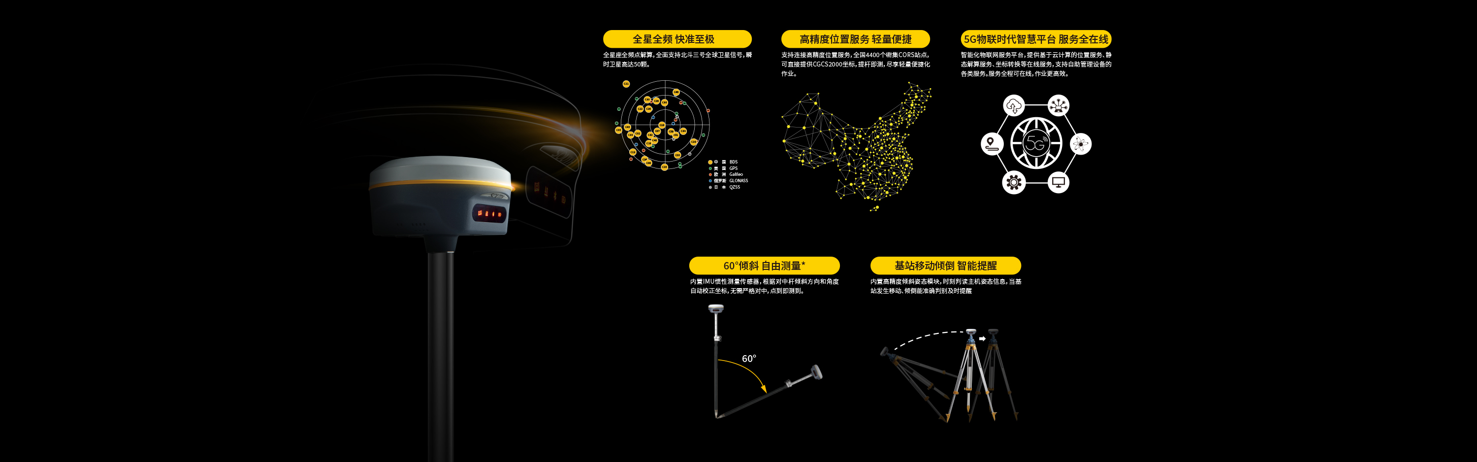 慣導(dǎo)傾斜測量(選配) | 內(nèi)置IMU慣性測量傳感器,支持慣導(dǎo)傾斜測量功能,根據(jù)對中桿傾斜方向和角度自動校正坐標。 |